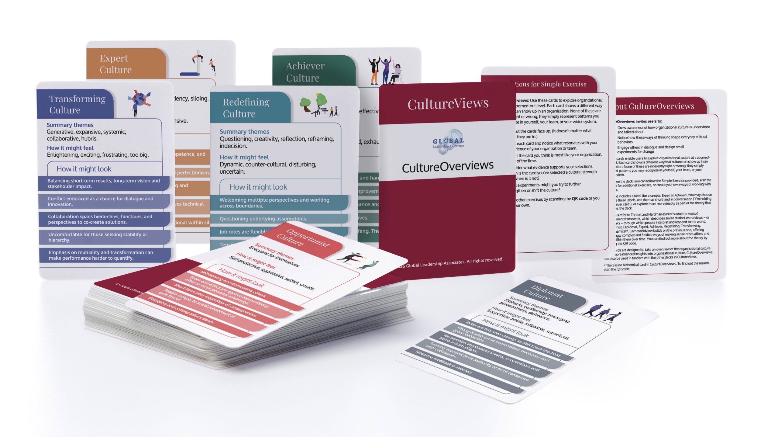 1 box of CultureViews includes – 8 CultureOverview cards, 98 CultureInsights cards, 34 GlobalViews cards and 44 Change cards. For more information on the individual decks, please click HERE.